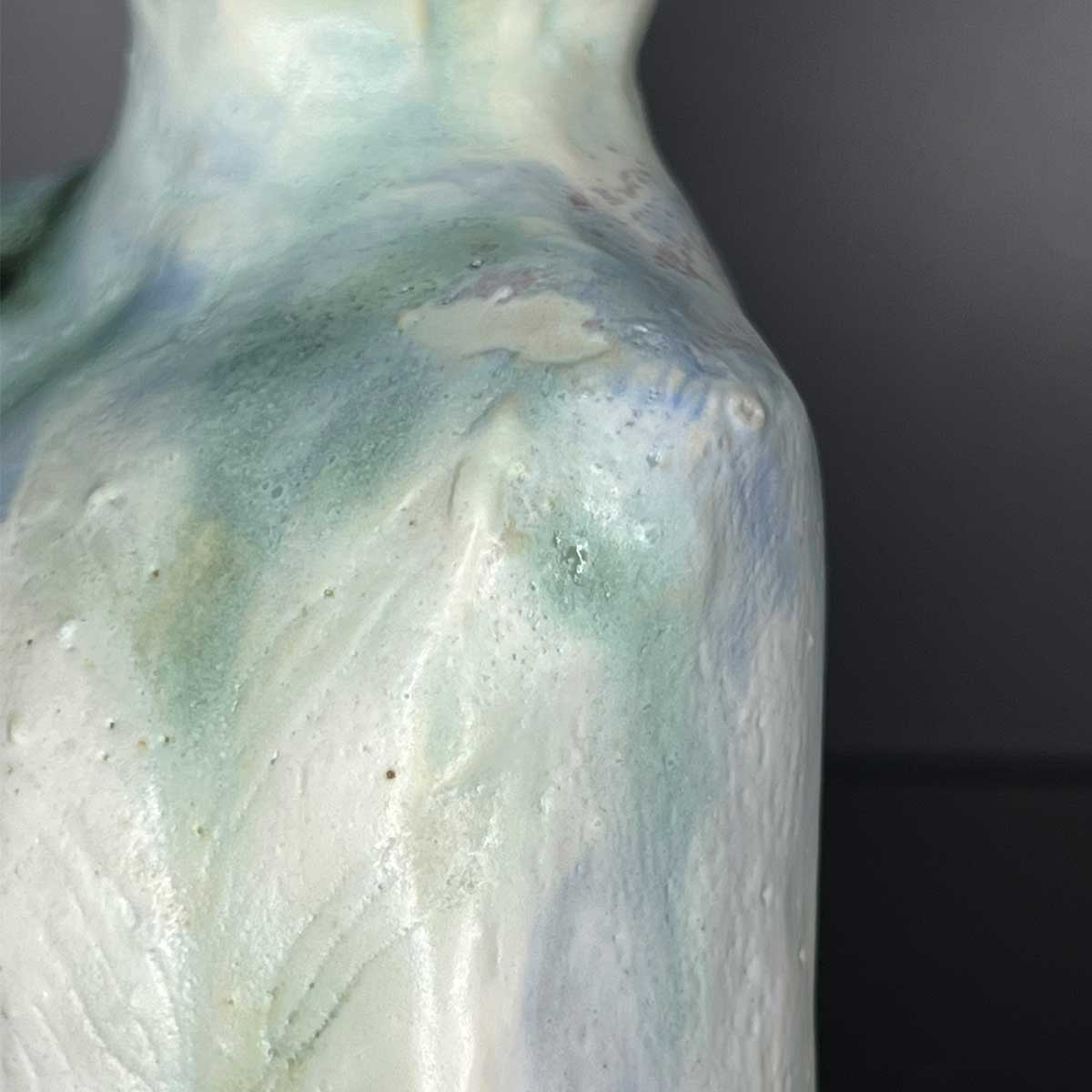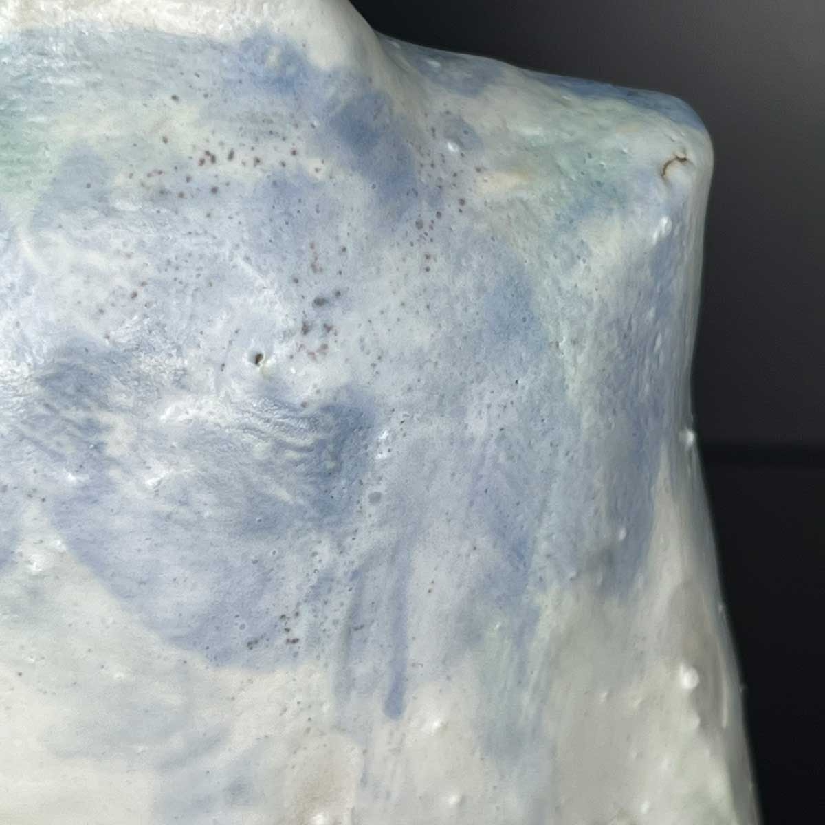 It’s a very textured piece with some glazed, some unglazed and some layering on the glazes. This is intentional to add interest and depth and to increase the desire to want to explore the texture.